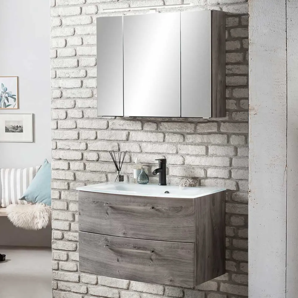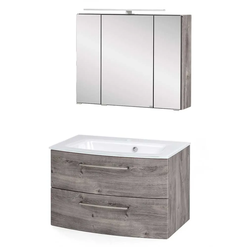 - Trendstarkes Badmöbel Set in Eiche Grau