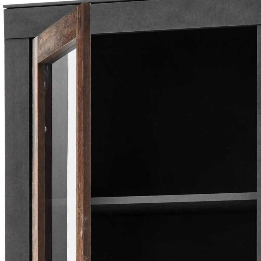 - Moderne Vitrine in Dunkelgrau und Altholz Optik