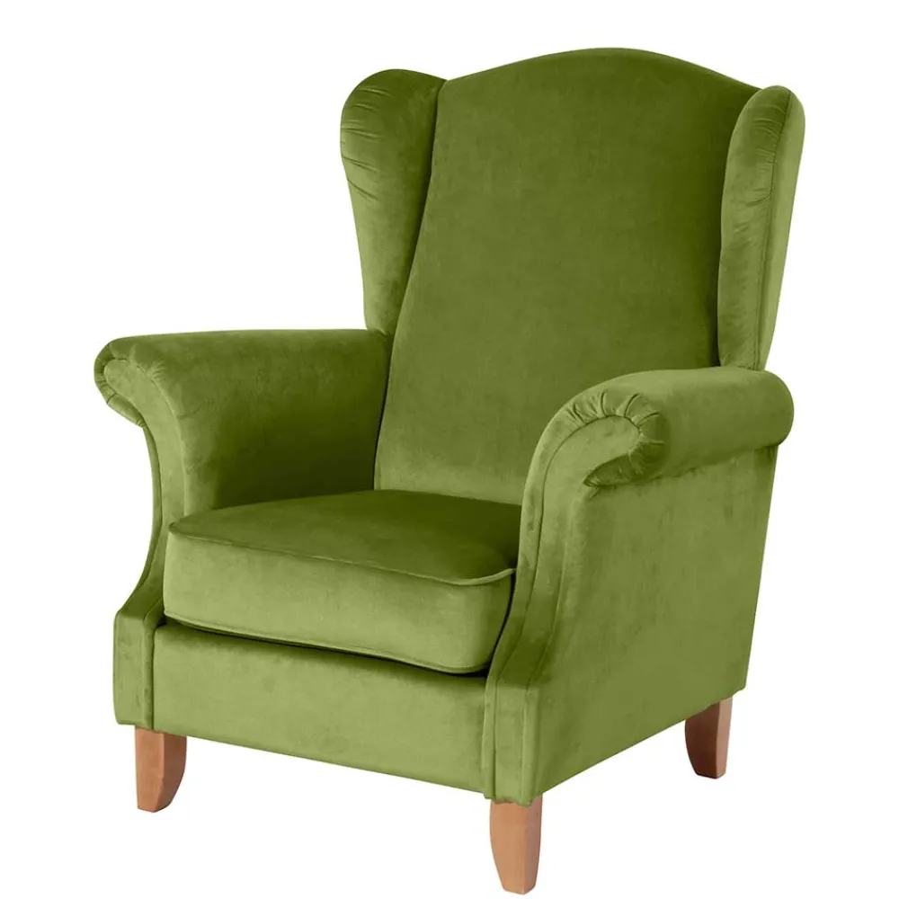 - Schicker Sessel in Olivgrün und Buchefarben