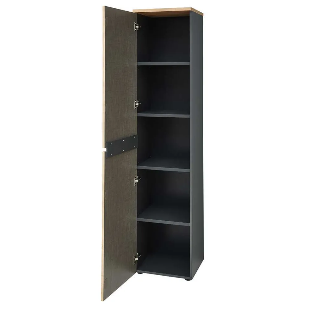 - Pflegeleicht folierte Oberflächen in Holzoptik Wildeiche und Dunkelgrau, Front mit tiefgezogenen Kanten