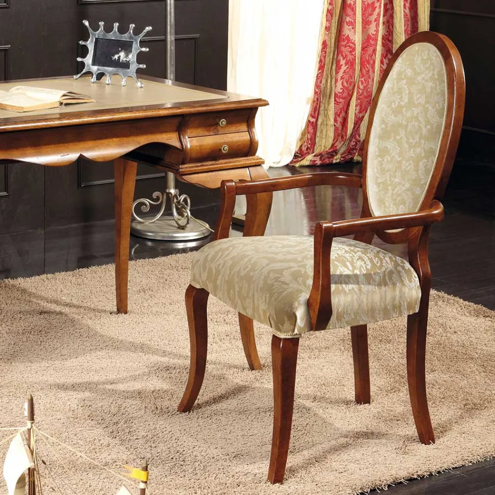 - Luxuriöser Armlehnstuhl in Cremeweiß, Beige und Nussbaumfarben