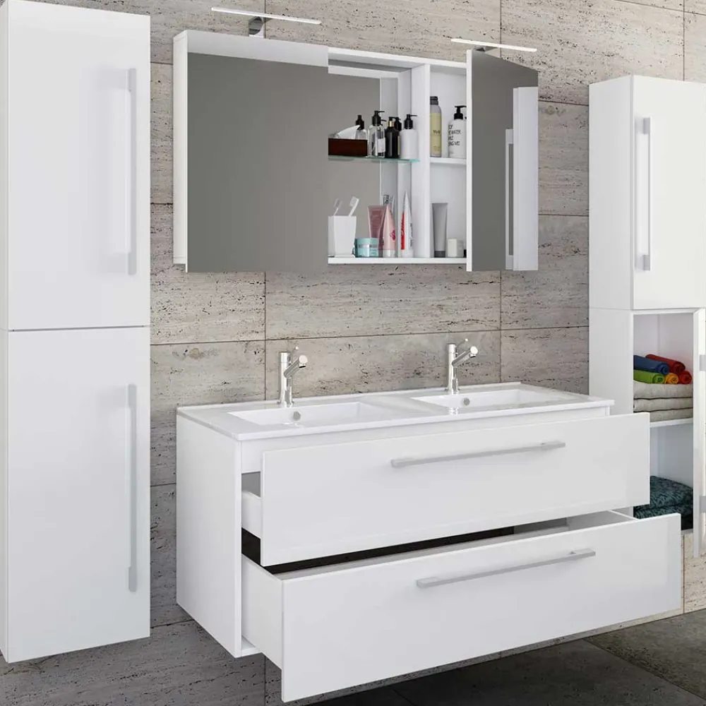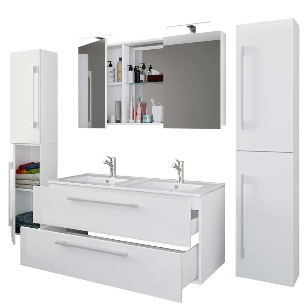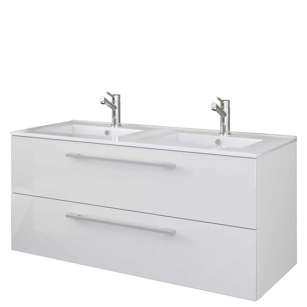 - Doppelwaschbecken aus Keramik, Maße: BxHxT: 110x17x46 cm, Innenmaße: BxT: je ca. 43×28,4 cm