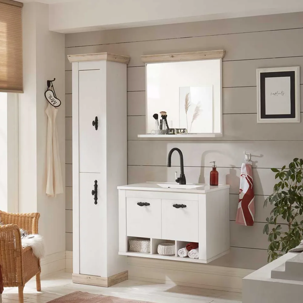 - Großartige Badmöbel Kombination in Weiß und Pinienfarben