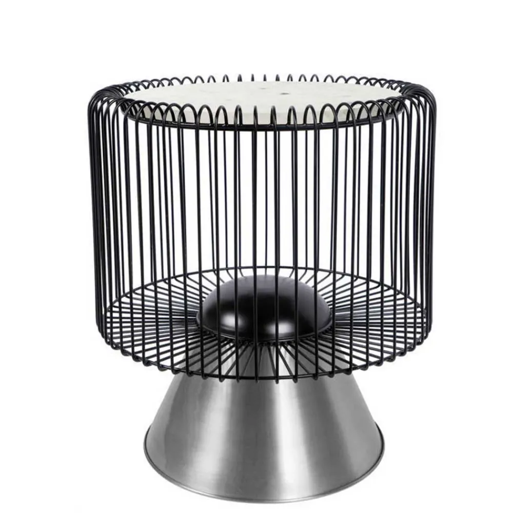 - Dekoratives Gestell mit silberfarbigem Sockel und schwarzem Drahtkorpus