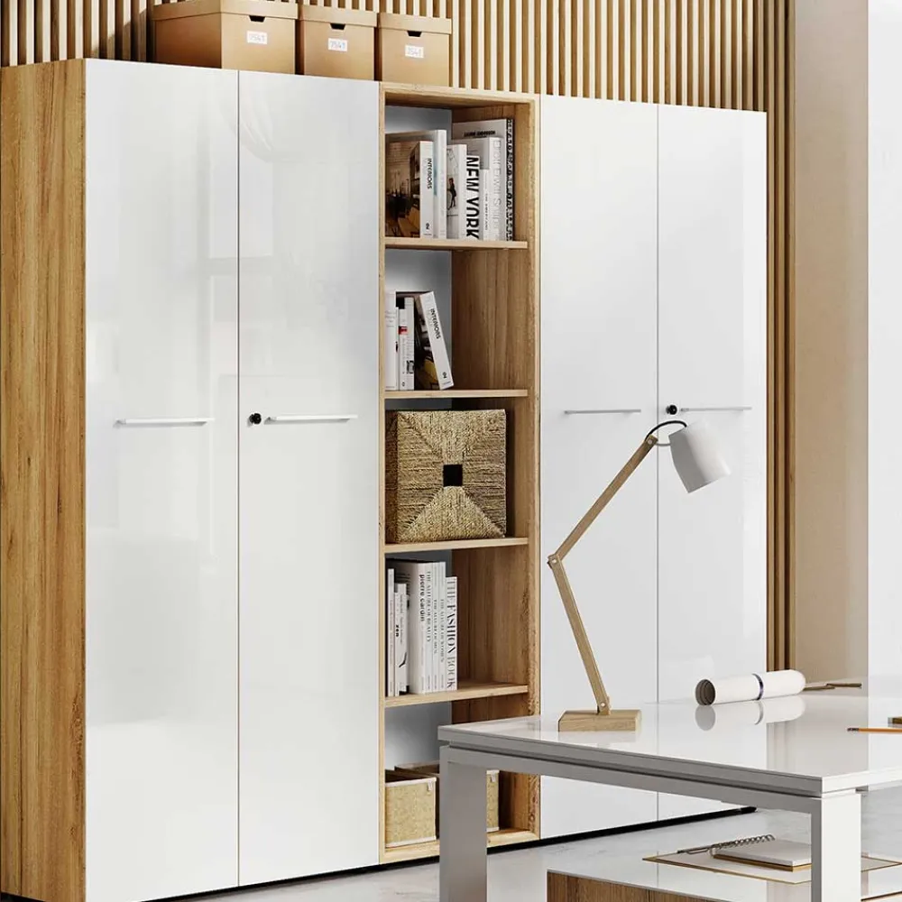 - Hohes Aktenregal in Wildeichefarben und Weiß