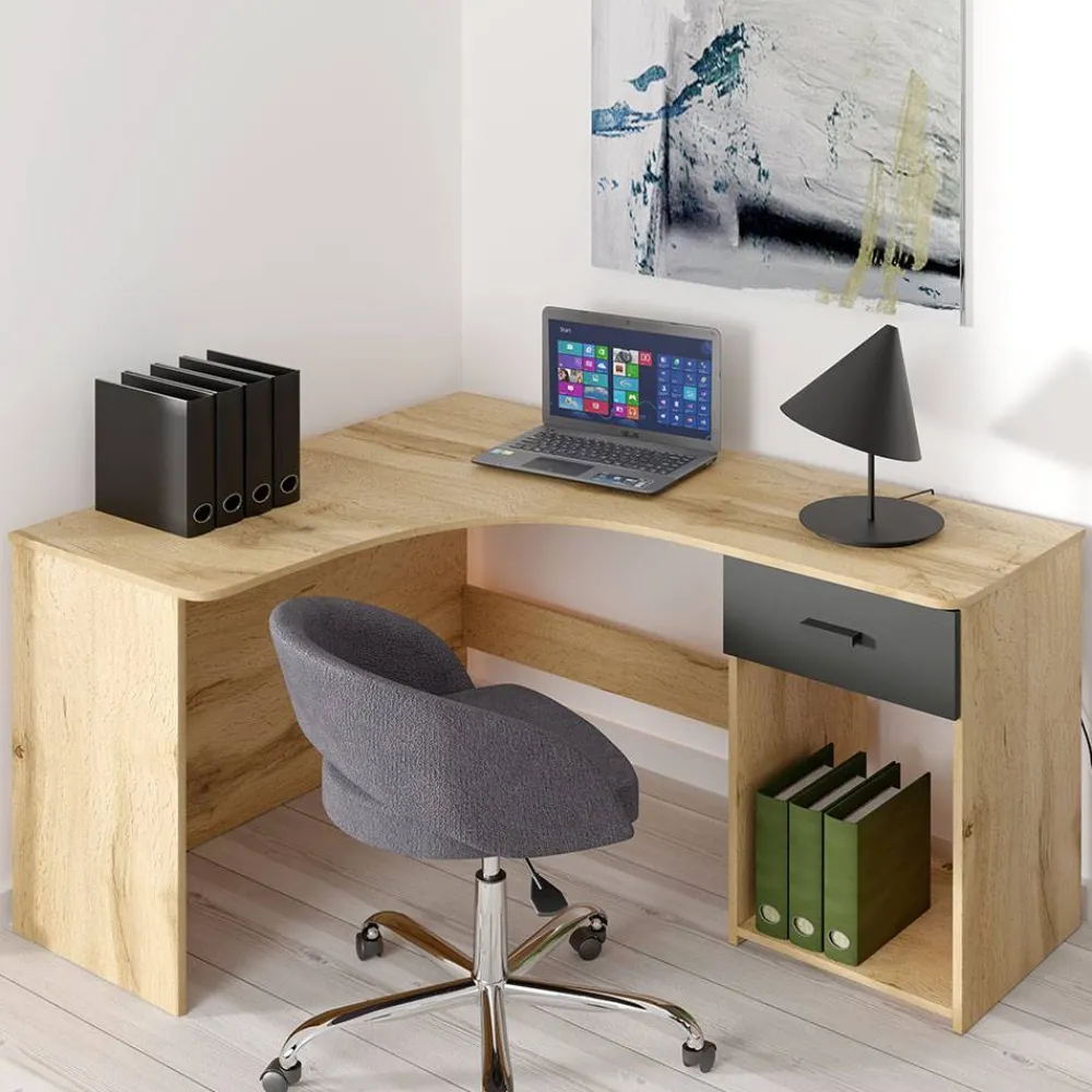 - Funktionaler Eckschreibtisch in Wildeichefarben und Schwarzgrau