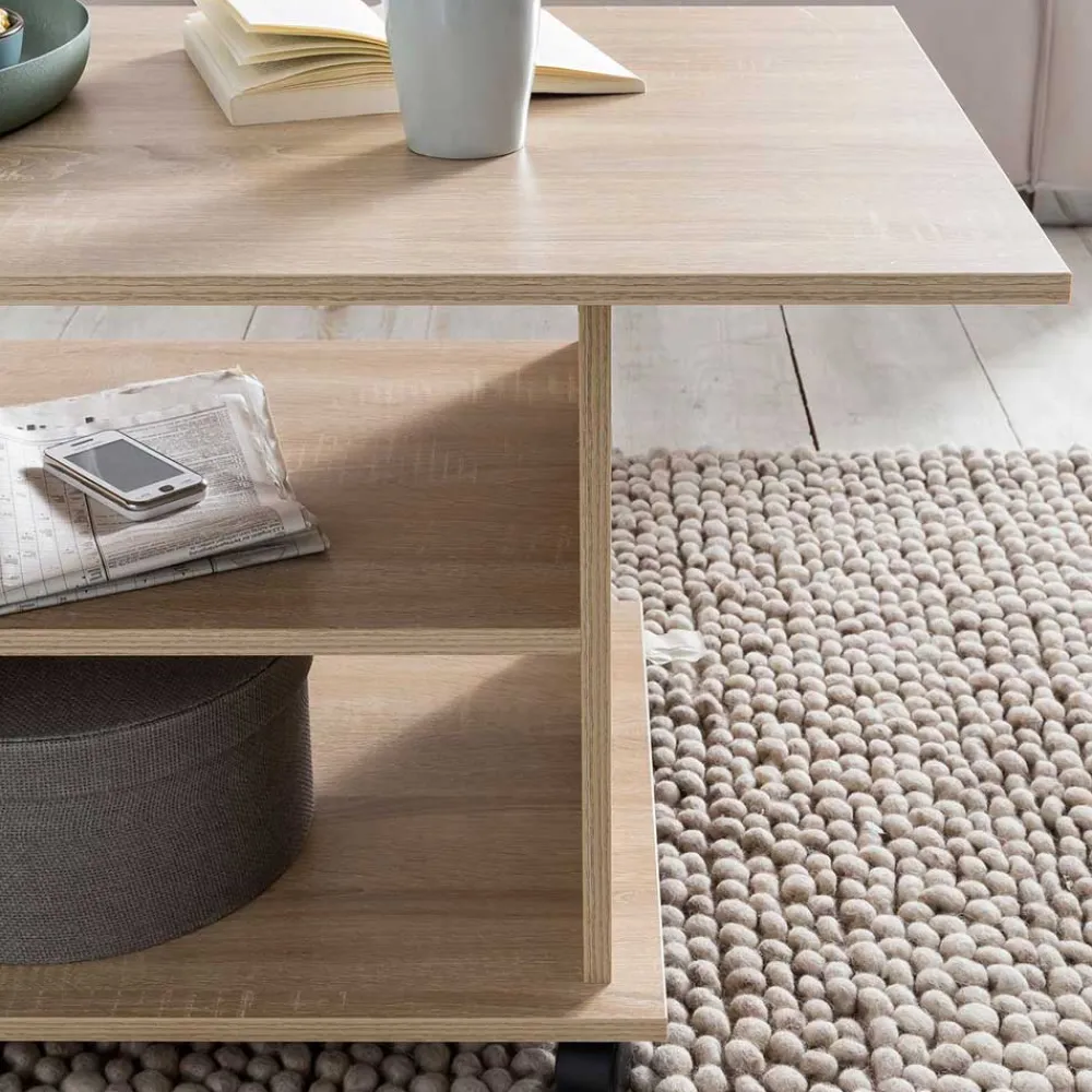 - Zwei Ablagen unterhalb der Tischplatte, Maße: BxHxT: je ca. 52×20,5×40,5 cm