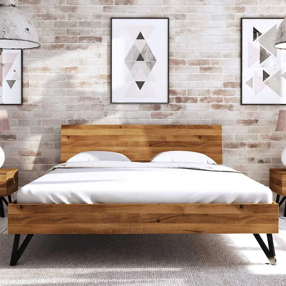 - Geschmackvolles Bett in Wildeichefarben und Schwarz