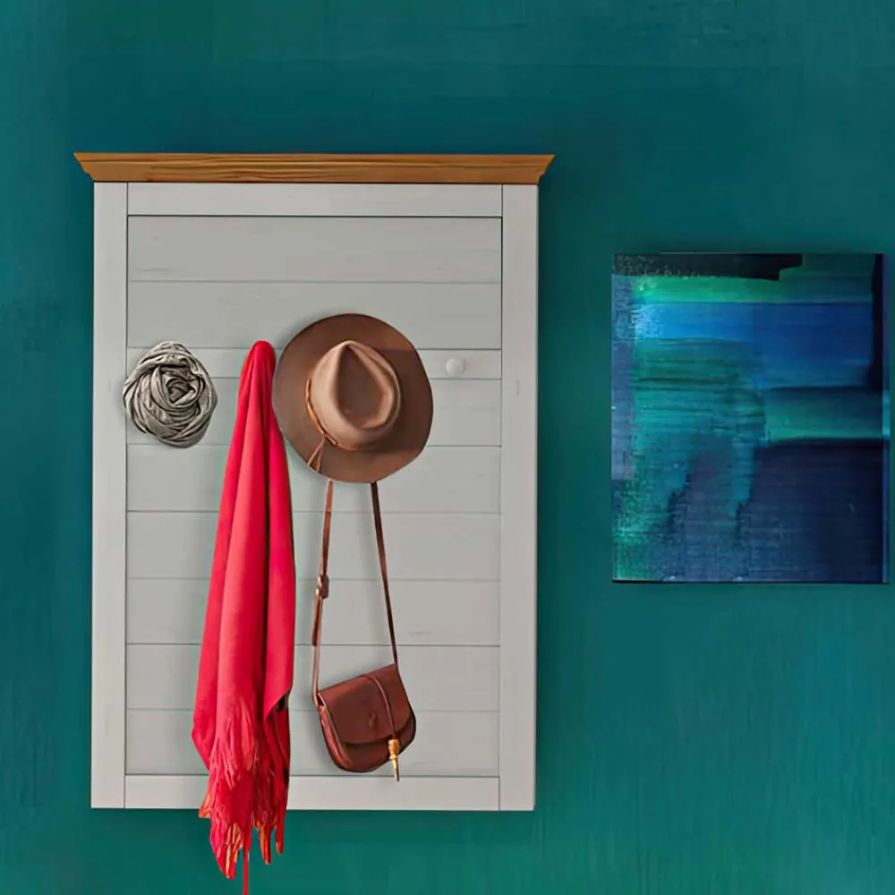 - Praktische Wandgarderobe in Weiß und Kieferfarben