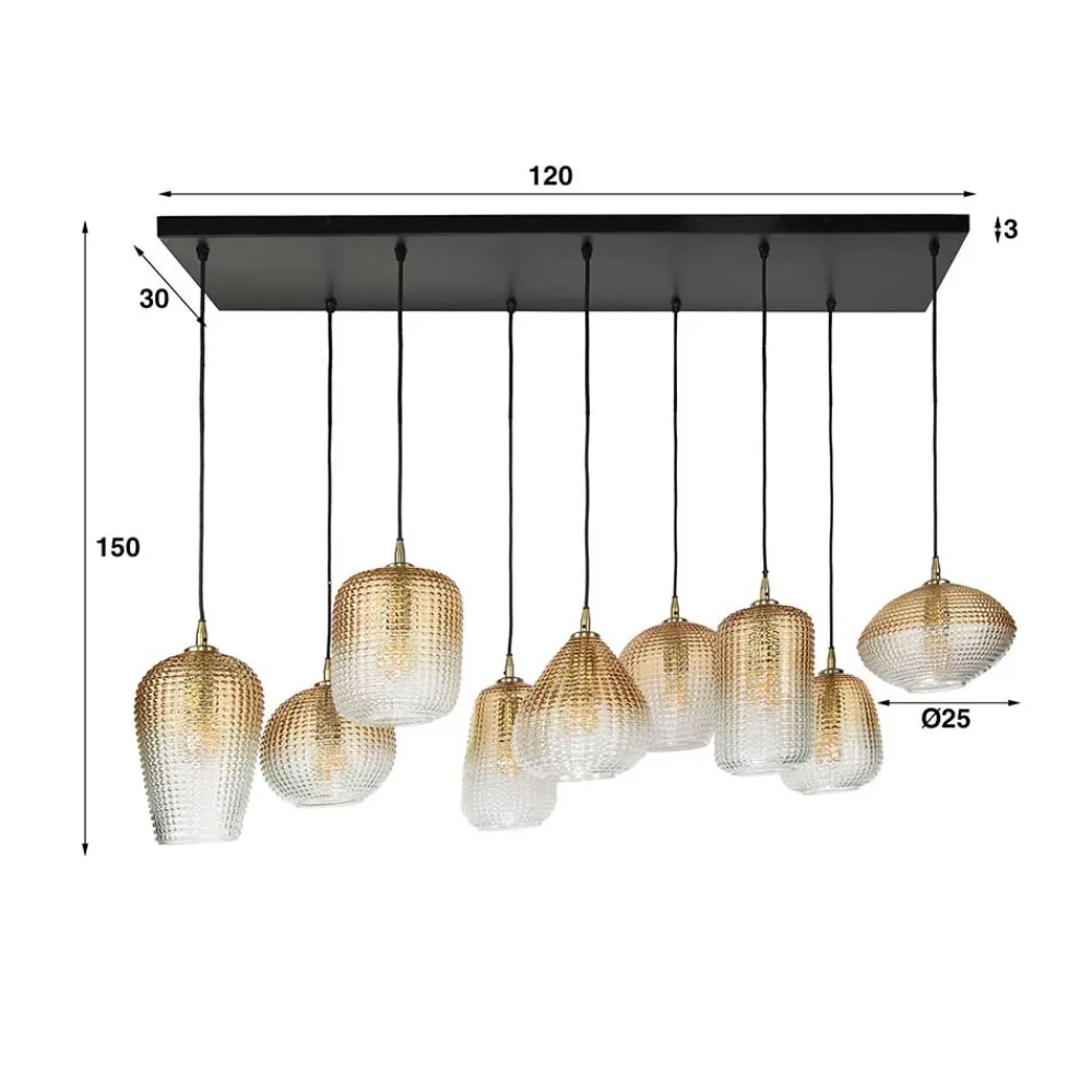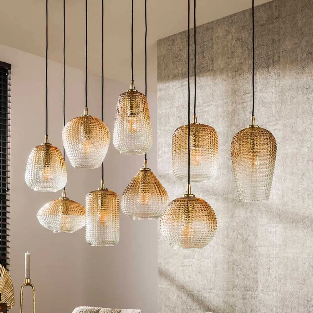 - Eleganter Farbverlauf der Lampenschirme von bernsteinfarbig zu transparent