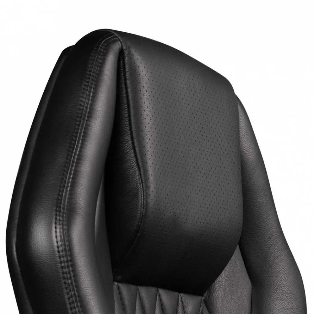 - Extra hohe Rückenlehne mit integrierter Lendenwirbelunterstützung und weicher, perforierter Kopfstütze