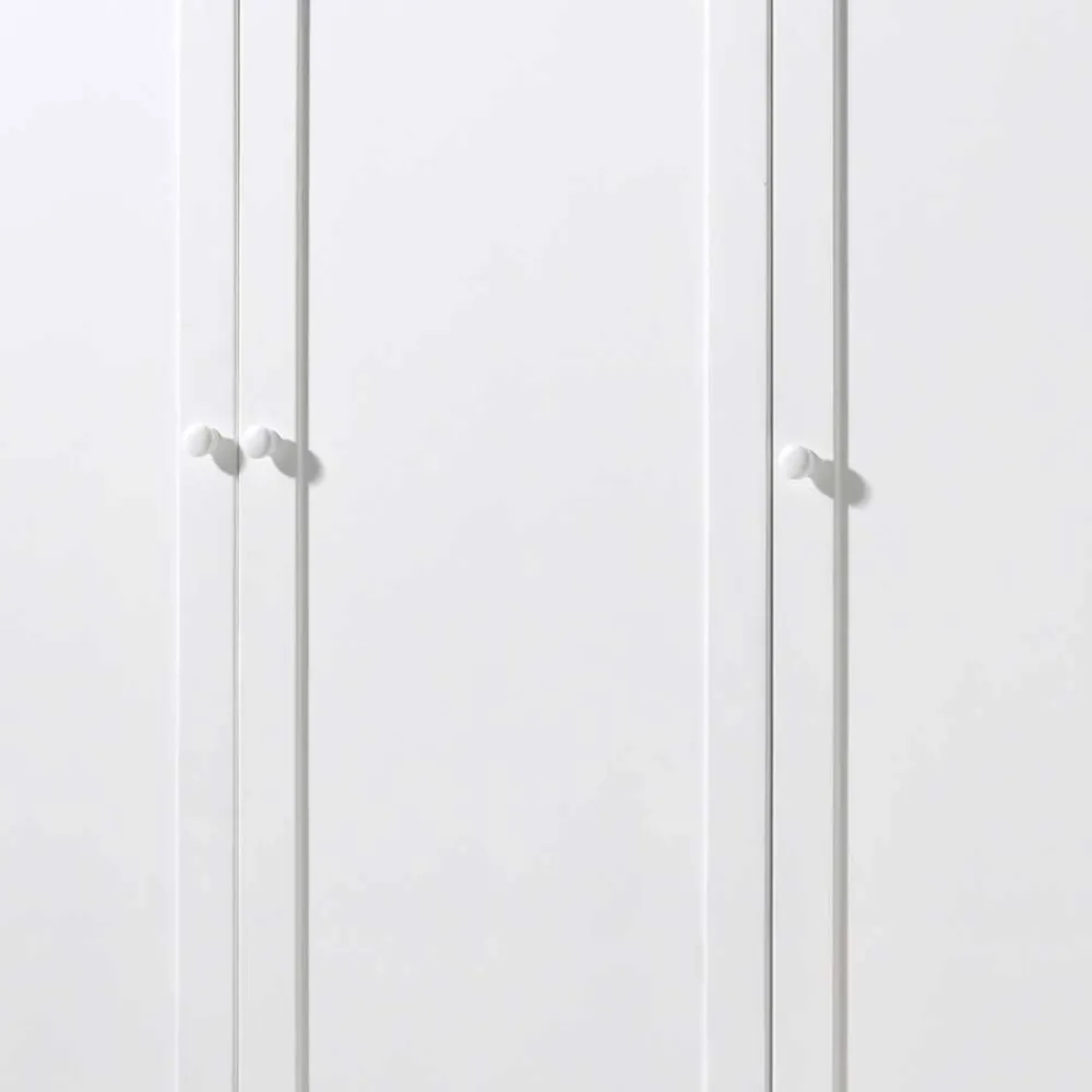 - Hinter den beiden linken Türen befindet sich oben und unten je ein Fachboden und darunter eine Kleiderstange (der untere Fachboden ist verstellbar)