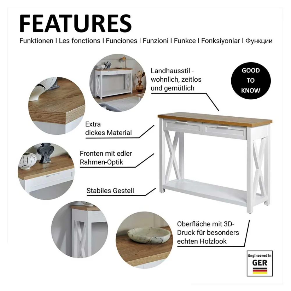- Klasse Konsolentisch in Weiß und Eichefarben
