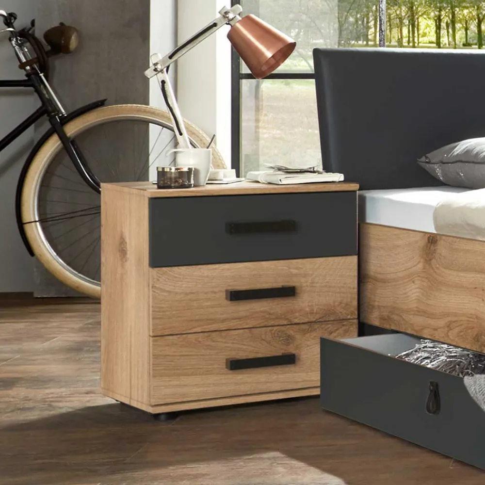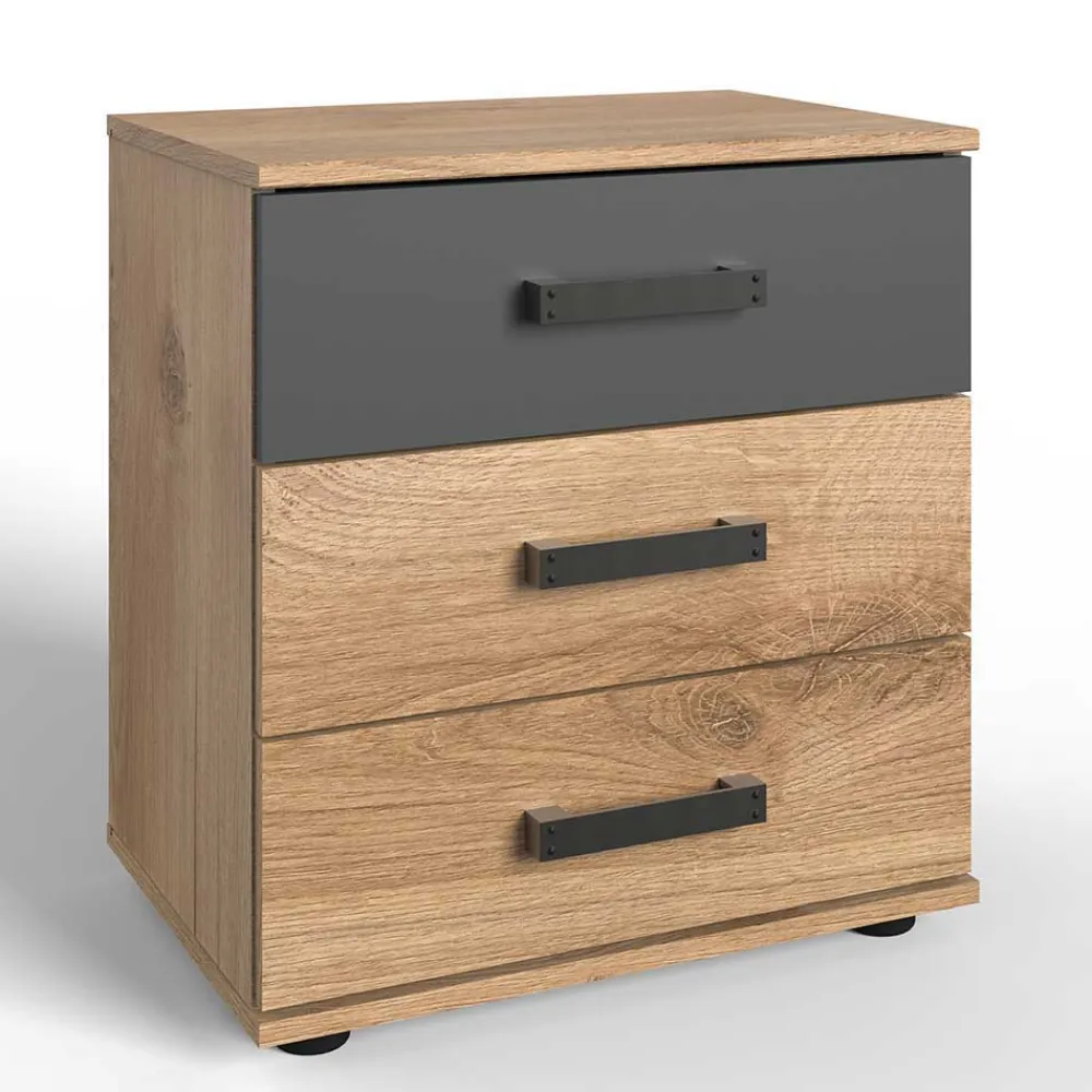 - Trendstarke Schlafzimmer Möbel in Plankeneiche Holzoptik und Dunkelgrau