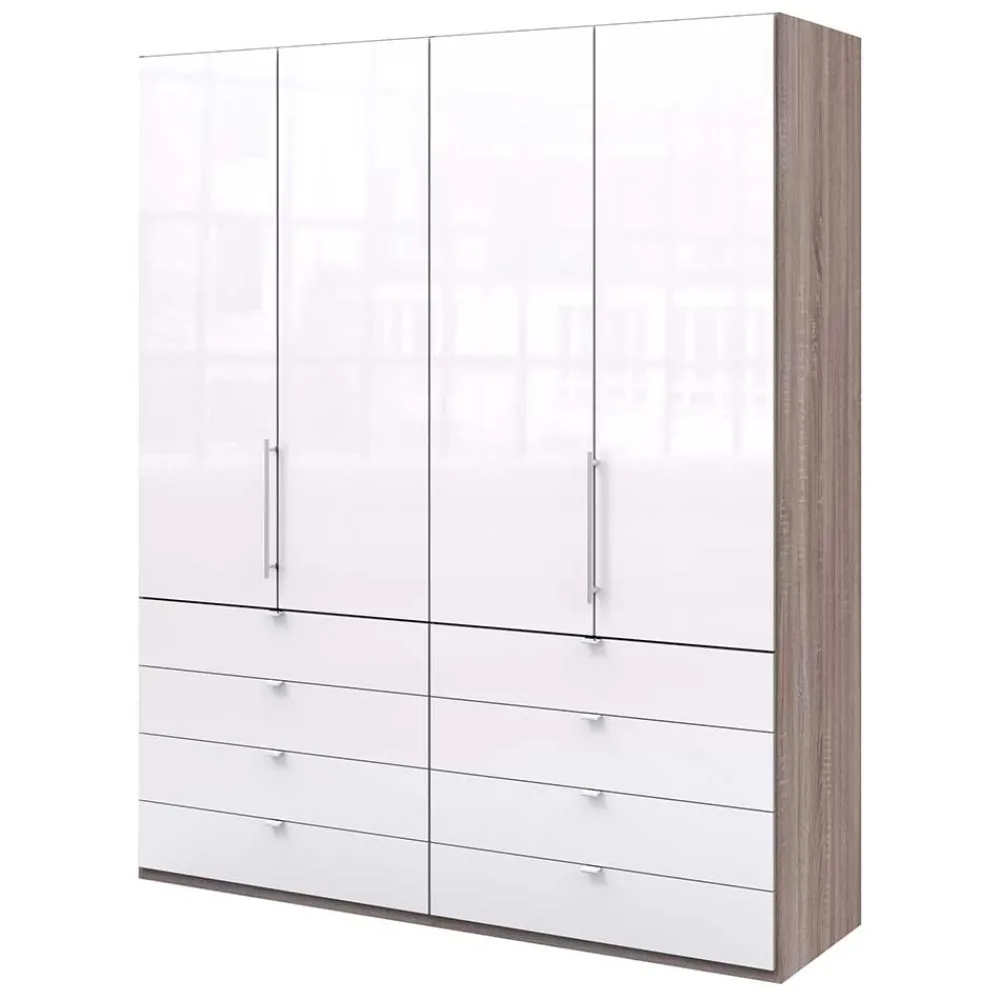 - Kontrastvoller Kleiderschrank in Weiß und Eiche Trüffelfarben
