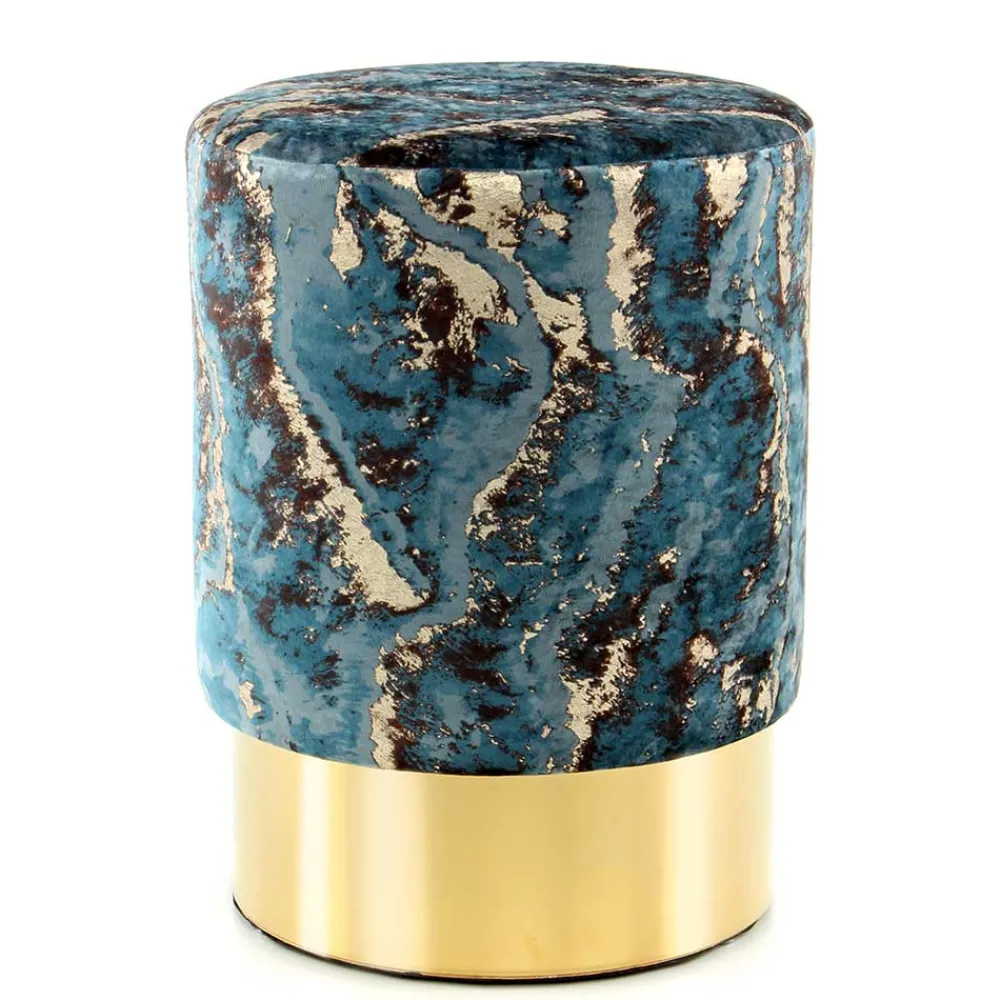 - Design Polsterhocker in Dunkelblau und Goldfarben