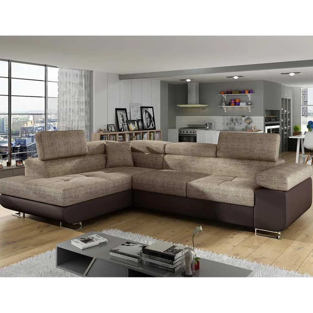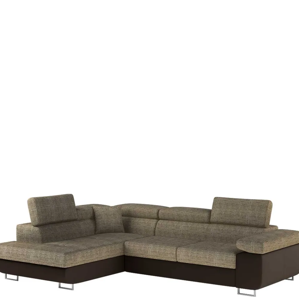- Strukturwebstoff-Bezug in Beige (100 % Polyester) und Kunstlederbezug (100 % Polyurethan) in Braun