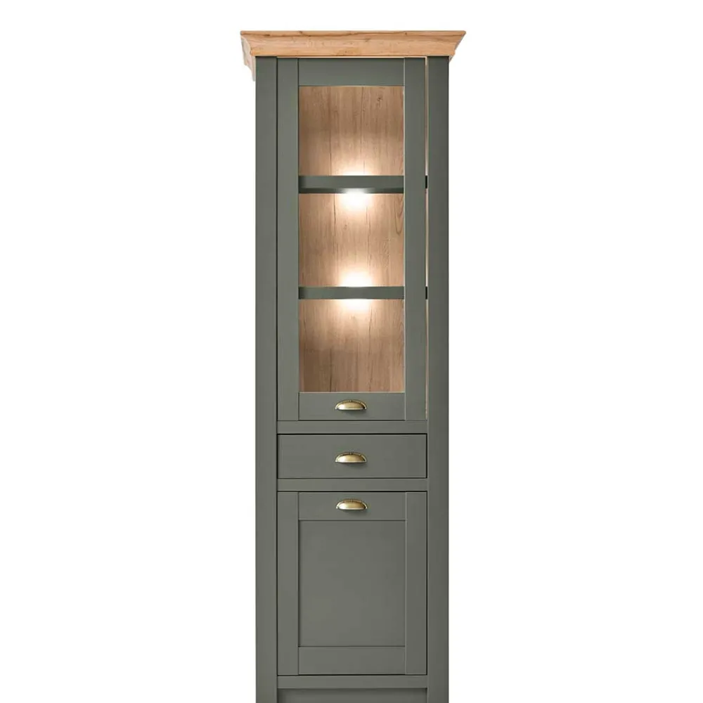- Traumhafte Vitrine in Graugrün und Wildeichefarben