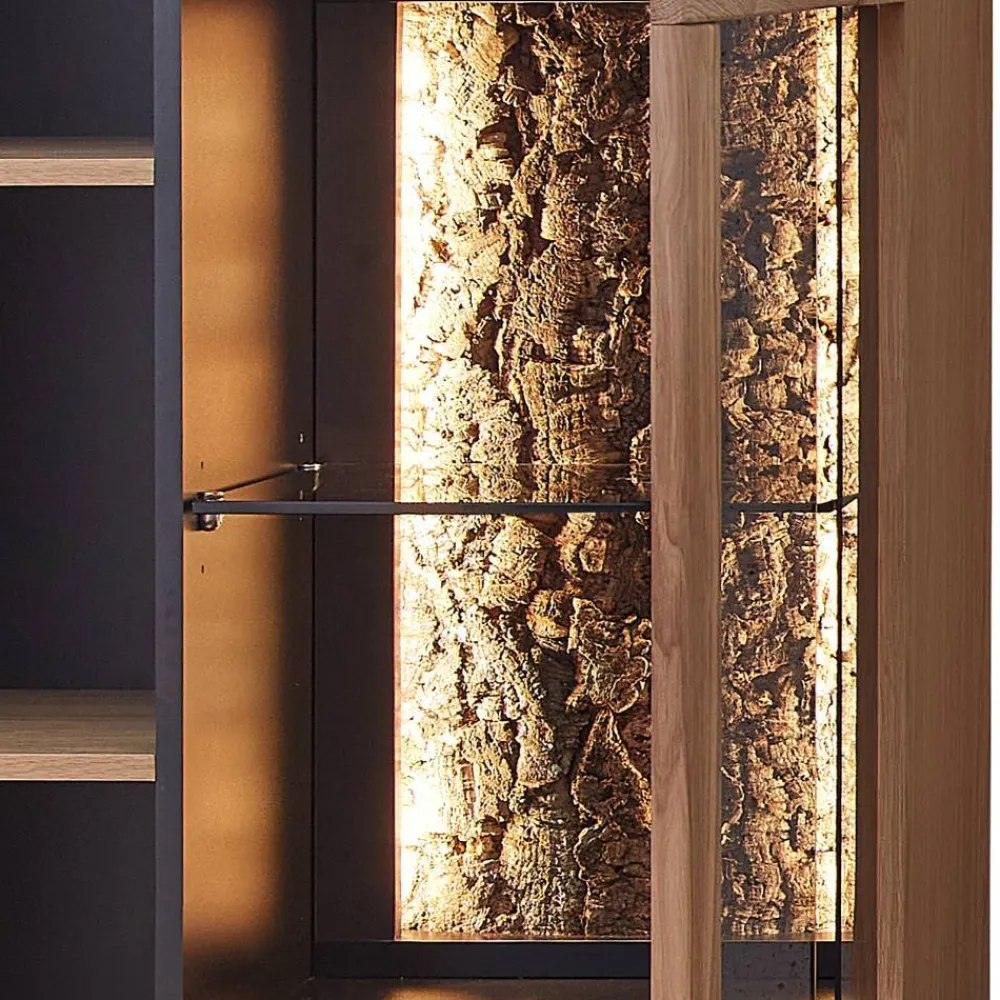 - Attraktive Wohnwand in Wildeiche Bianco und Anthrazit