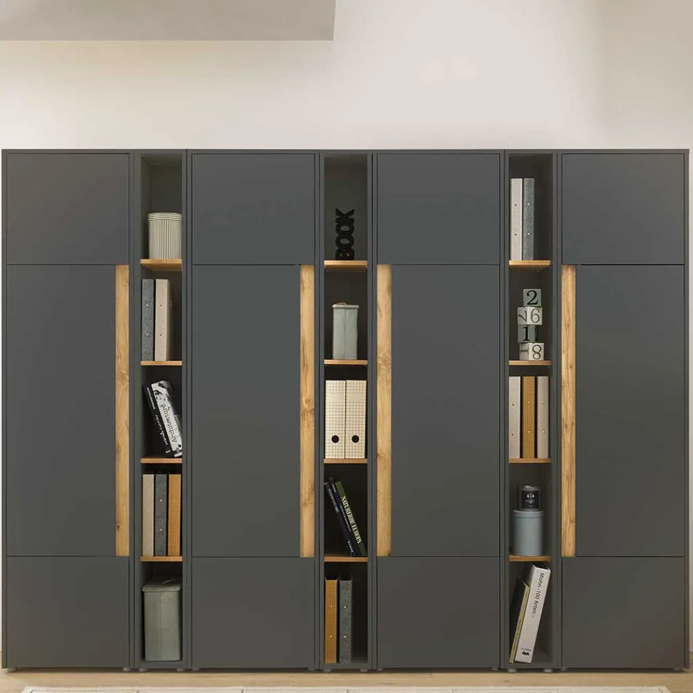 - Großzügige Büro Schrankwand in Anthrazit und Wildeichefarben
