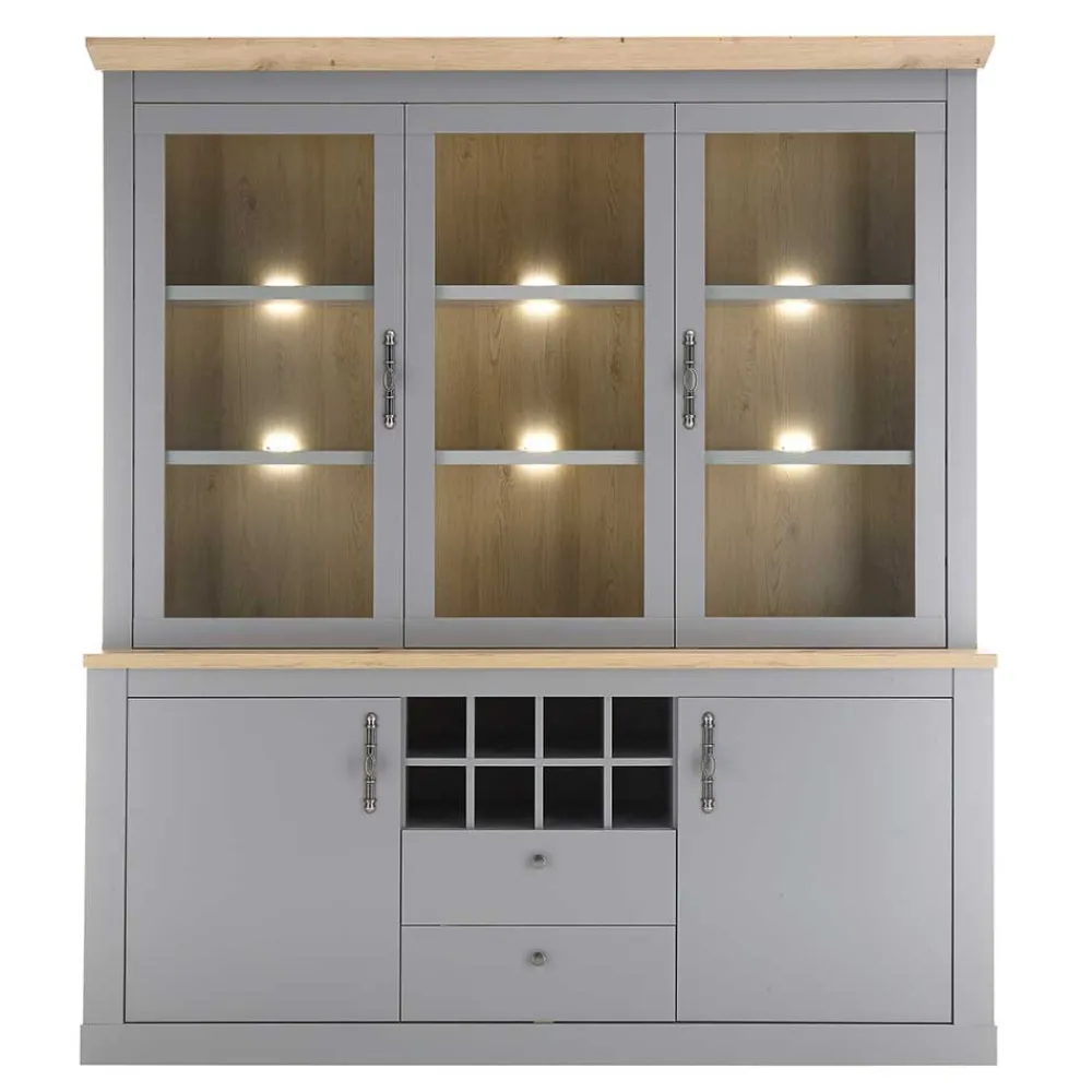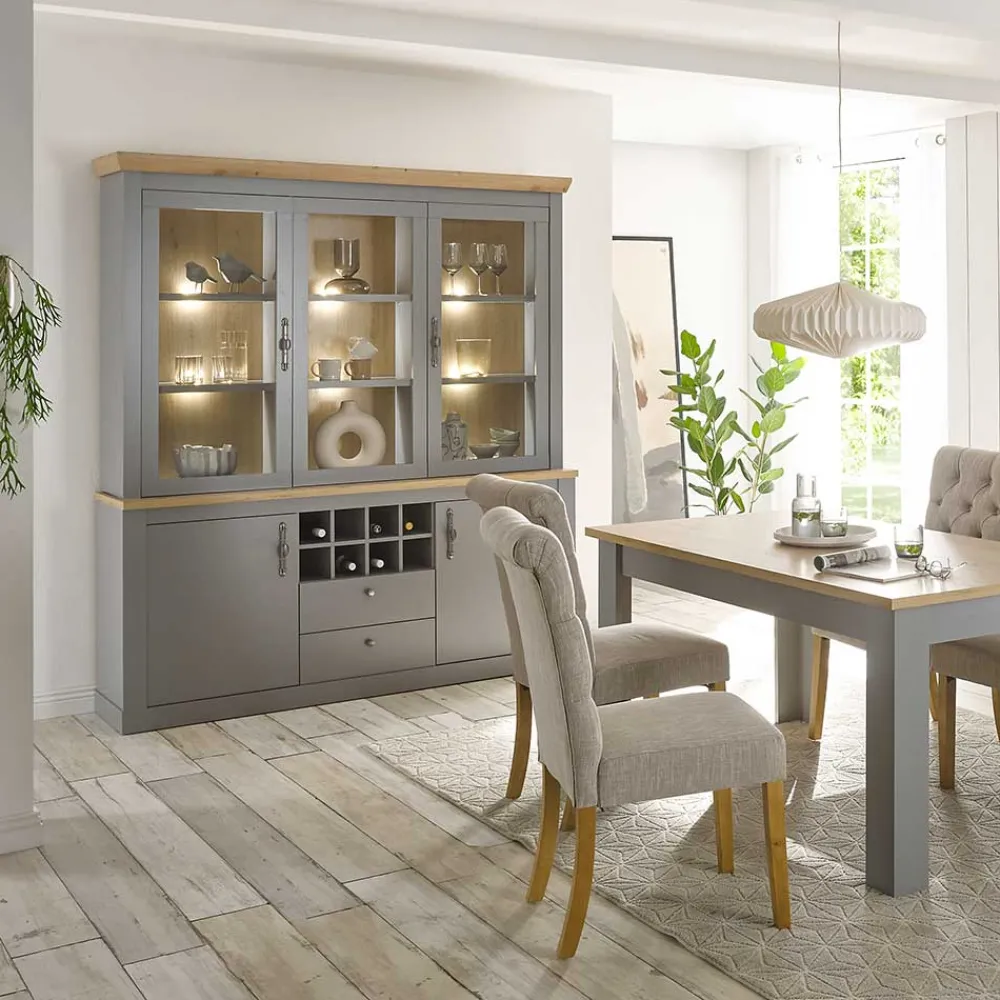 - Imposanter Buffet Schrank in Lichtgrau und Eichefarben