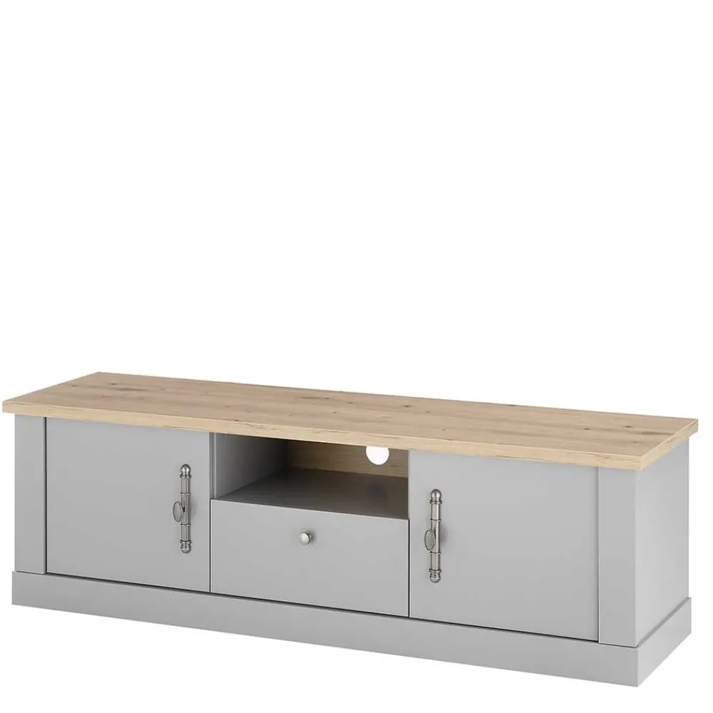 - Schickes TV-Board in Lichtgrau und Eichefarben