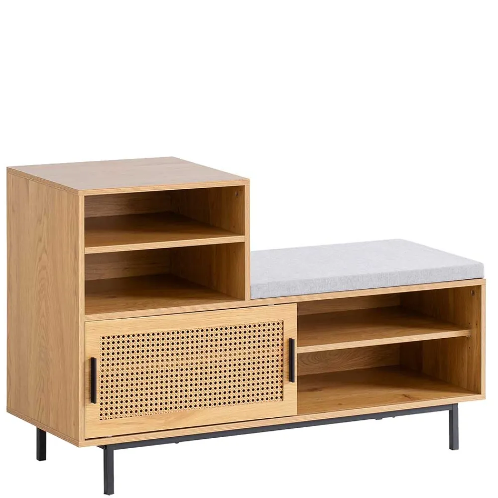 - Schicke Garderobenbank in Eichefarben und Schwarz im angesagten Skandi-Stil