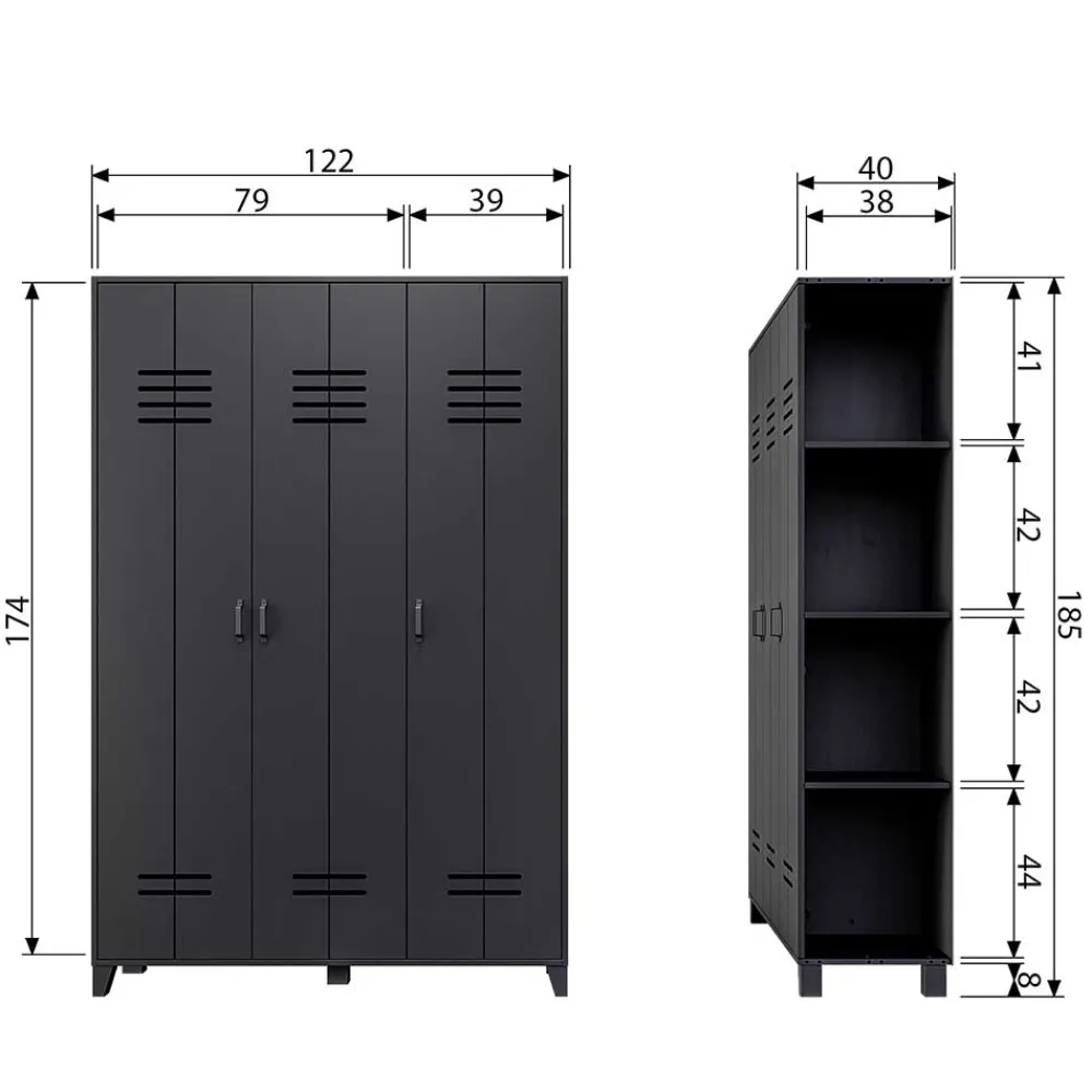 - 123 cm Breit, 186 cm Hoch, 40 cm Tief