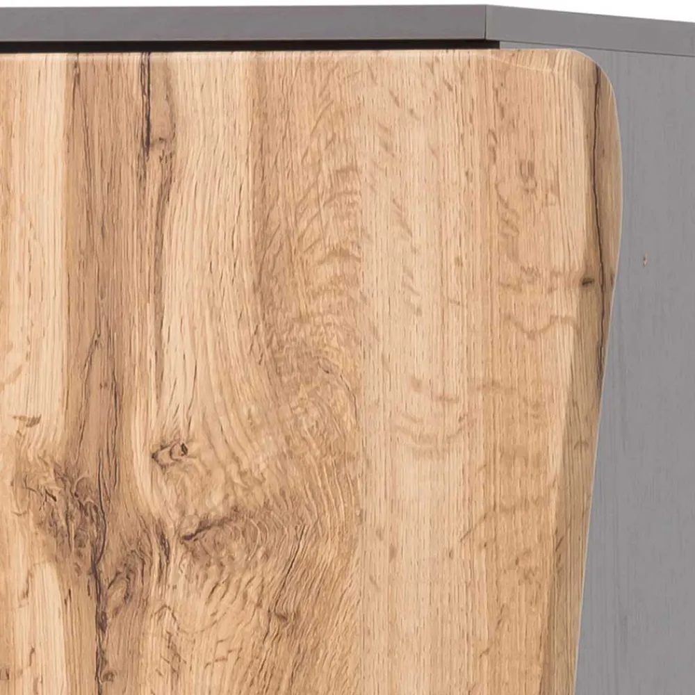 - Bad Midischrank in Dunkelgrau und Wildeichefarben mit Baumkante