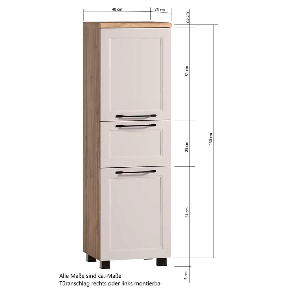 - Hochwertiger Badschrank in Hellgrau und Wildeichefarben