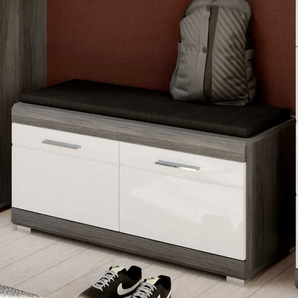 - Dezente Garderobenmöbel in Weiß und Rauchgrau