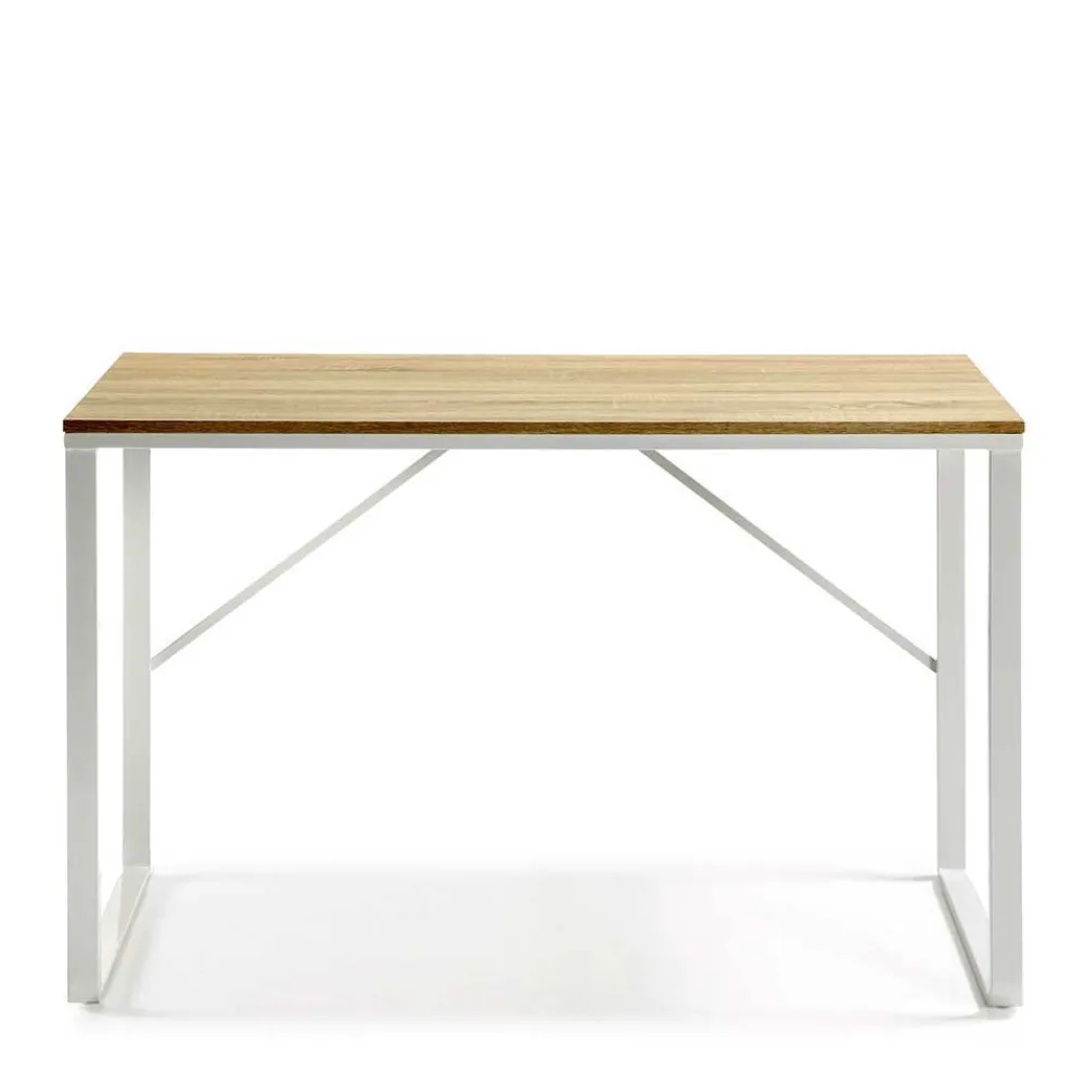 - Trendiger Schreibtisch in Weiß und Holz Naturfarben