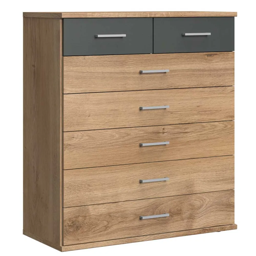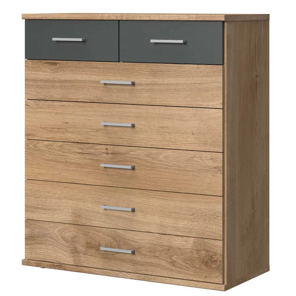 - Schicke Kommode in Eichefarben und Dunkelgrau