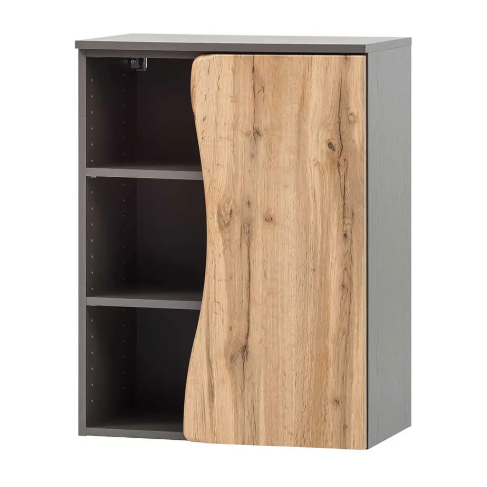 - Bad Unterschrank in Dunkelgrau und Wildeichefarben mit Baumkante