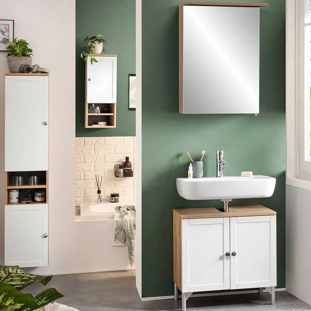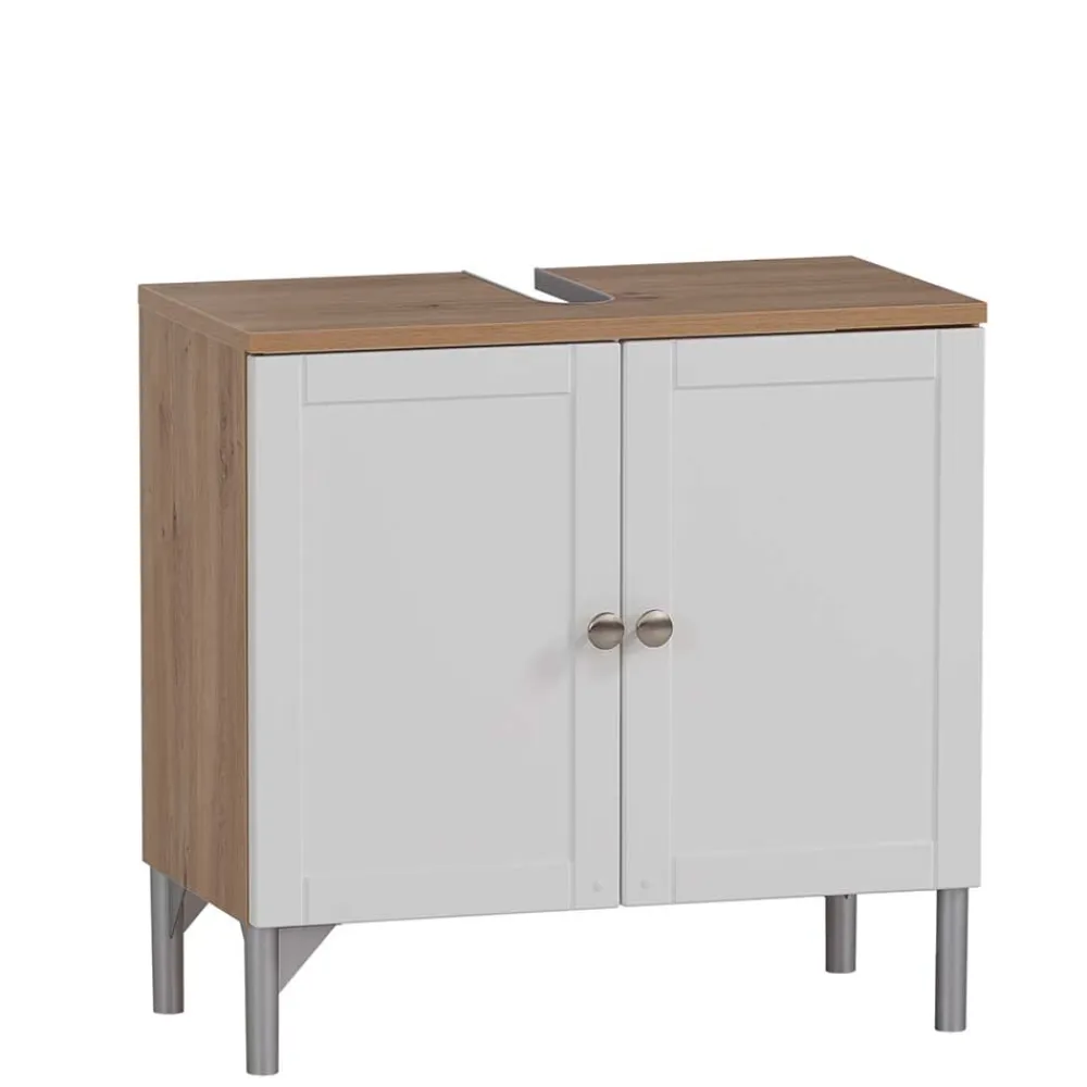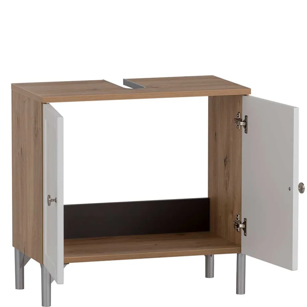 - Ansprechender Waschbeckenschrank in Weiß und Wildeichefarben