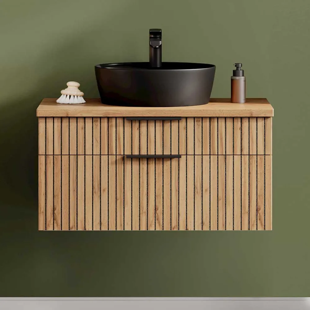 - Ansprechender Waschtisch in Wildeichefarben und Schwarz