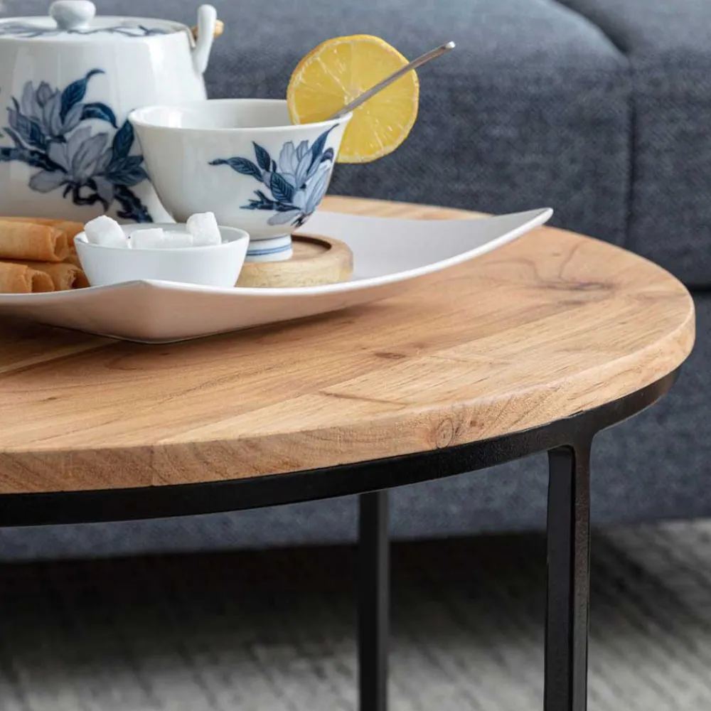 - Trendstarker Couchtisch in Akazie Naturfarben und Schwarz