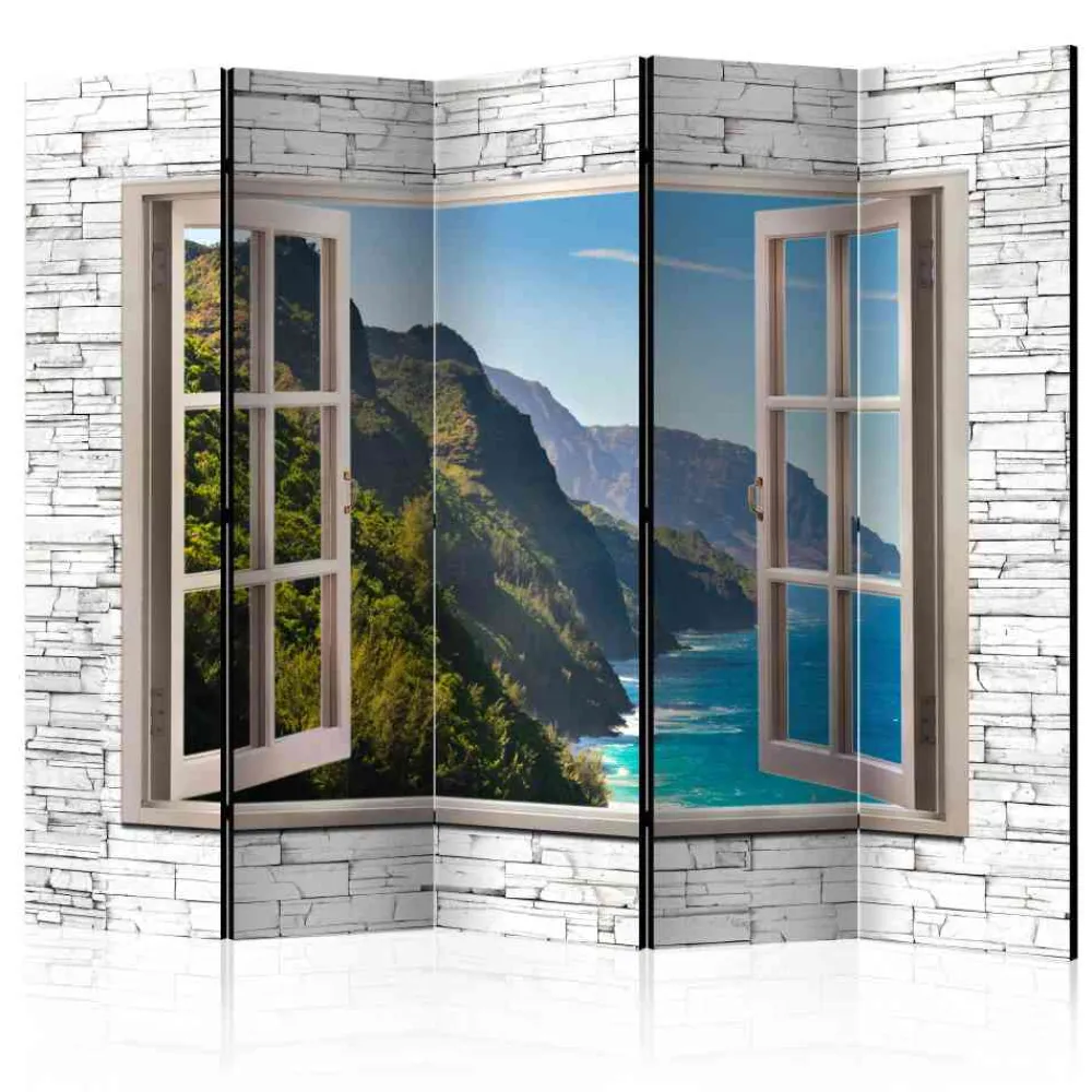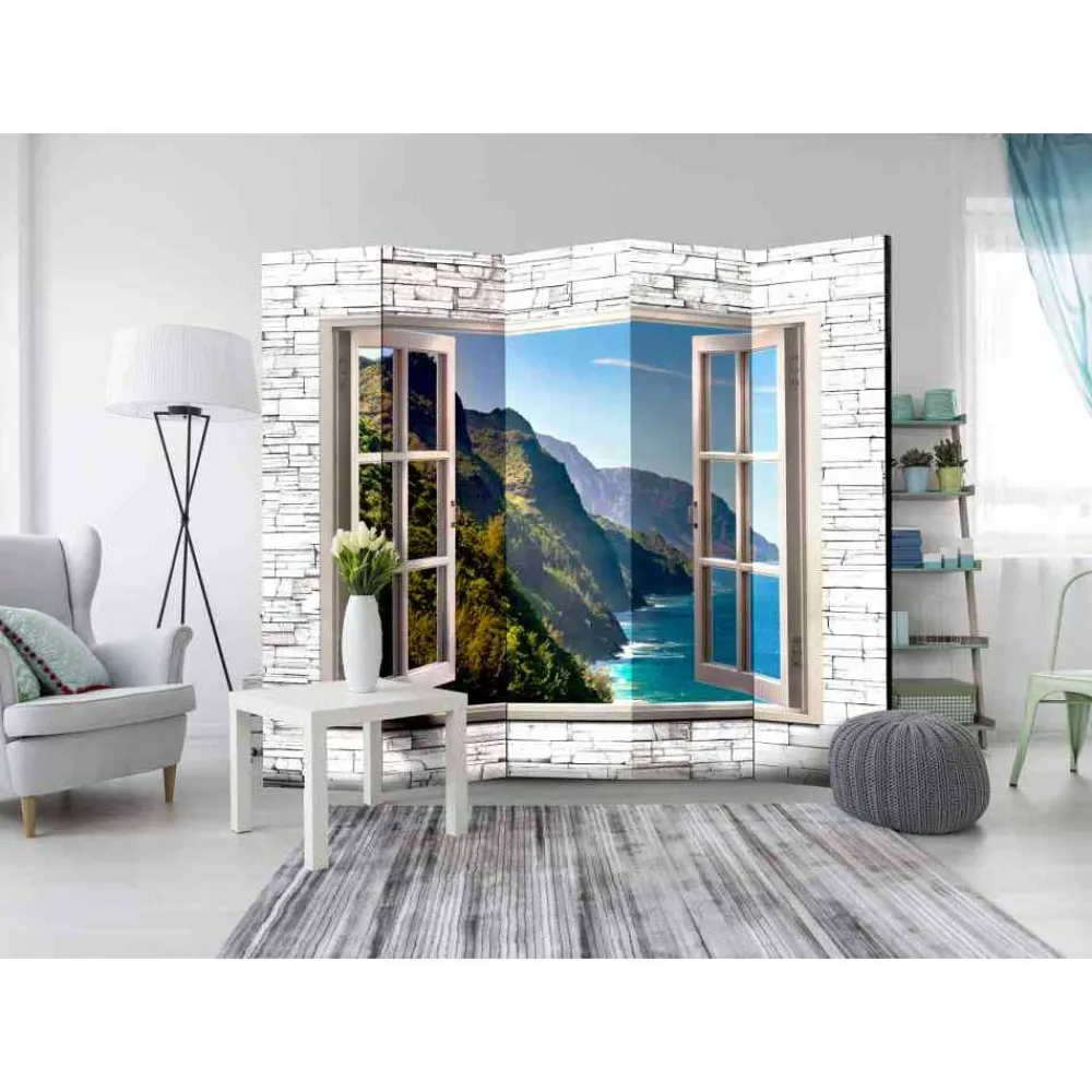 - Wunderschönes Fenster Motiv mit Blick auf eine Felsküste und Meer in 3D-Optik