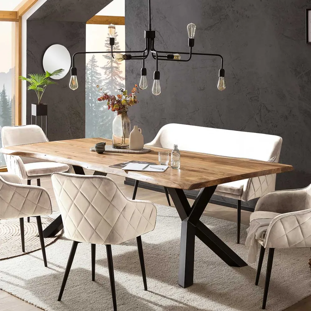 - Elegante Esstischbank in Cremeweiß und Schwarz