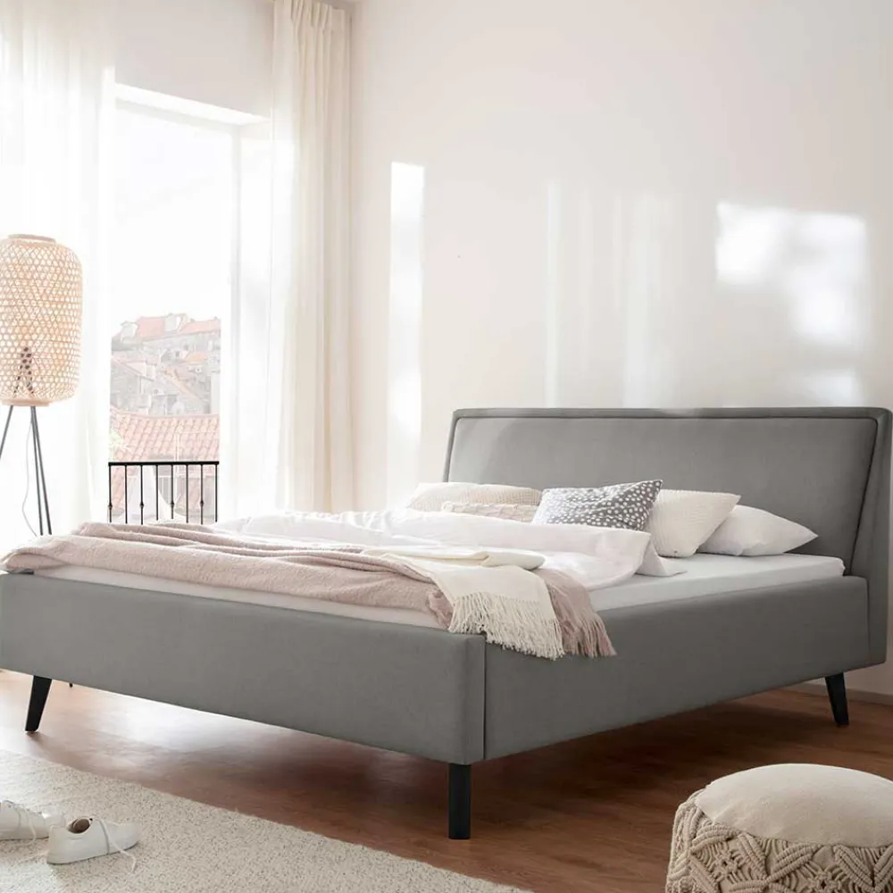 - Ausgezeichnetes Polsterbett in Hellgrau und Schwarz