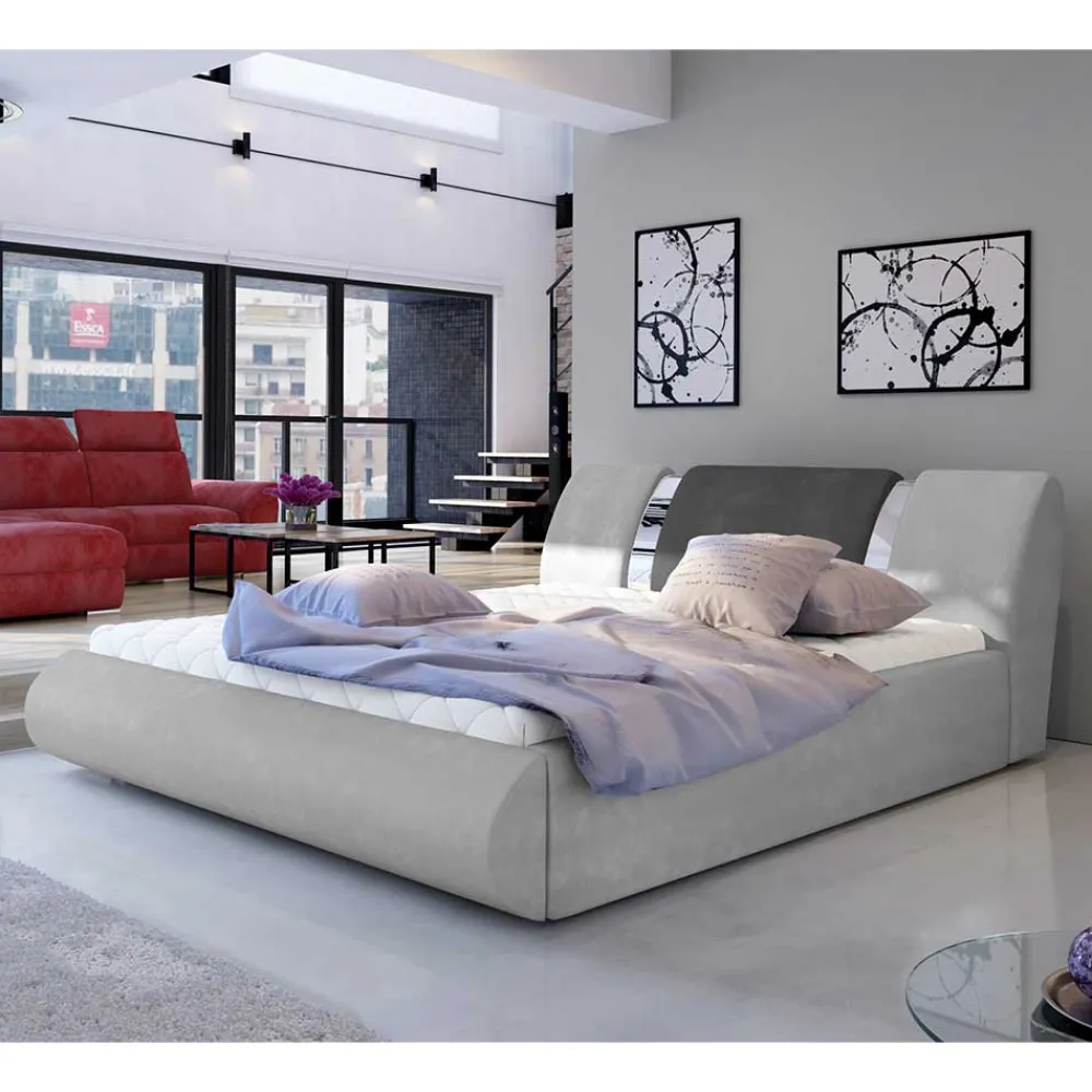 - Attraktives Polsterbett in Hellgrau und Dunkelgrau