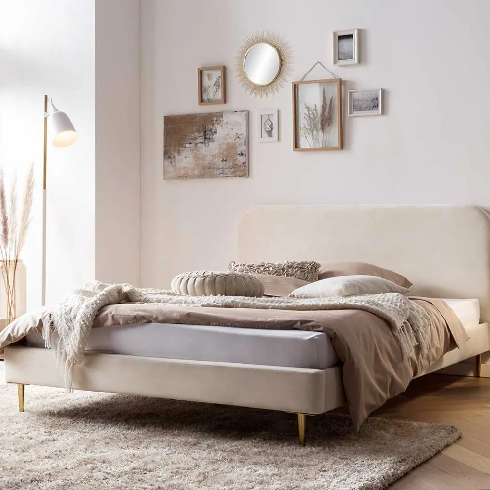 - Attraktives Polsterbett in Beige und Goldfarben