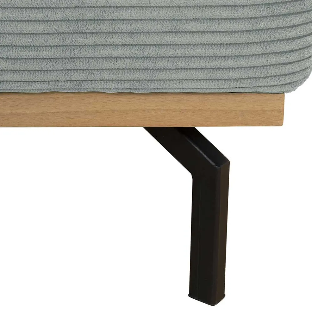 - Abgewinkeltes Metallgestell in Schwarz, Bodenfreiheit 20 cm, umlaufender Sockel in Buche Echtholz