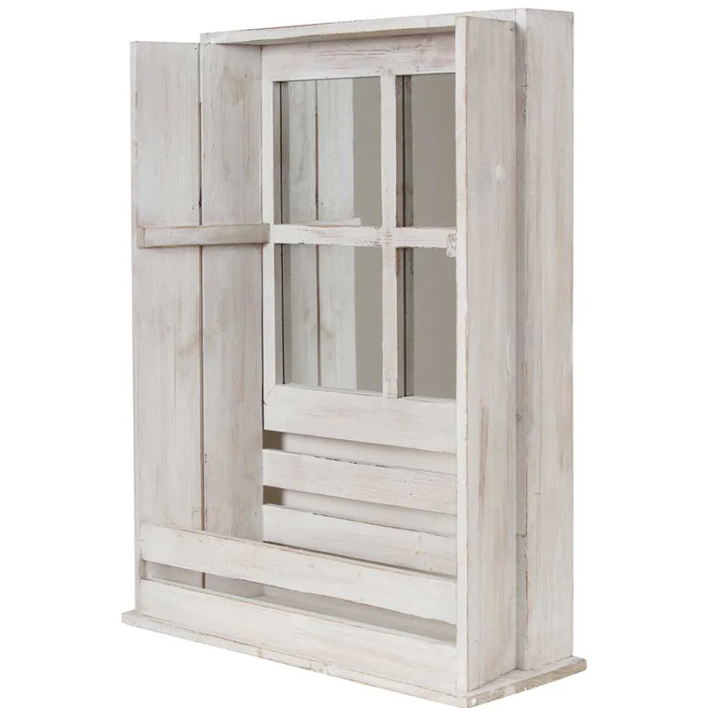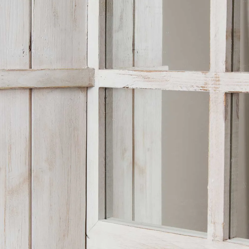 - Rückwand mit einem Spiegel und Sprossenfenster Optik
