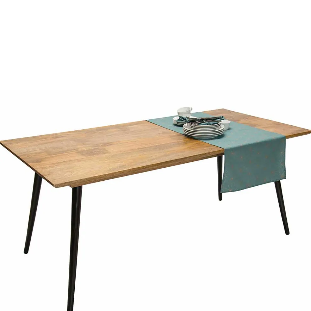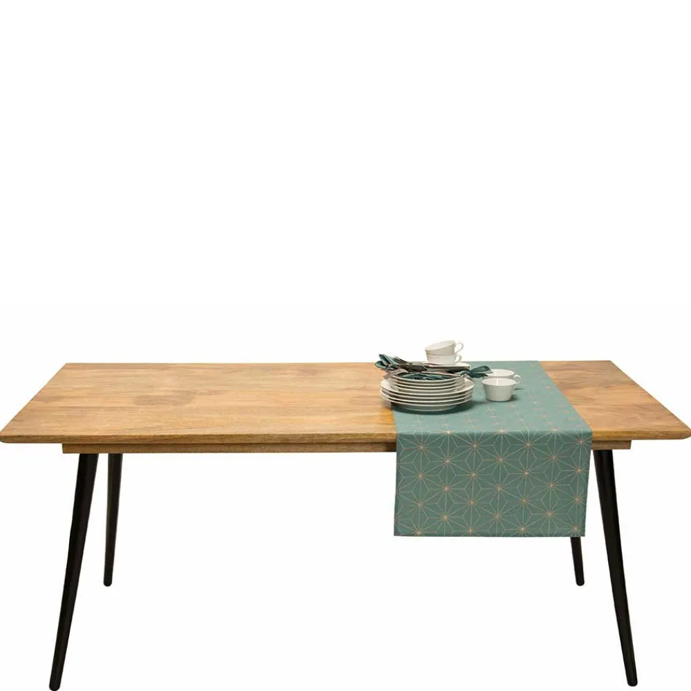 - Filigraner Esstisch in Mangoholz Naturfarben und Schwarz