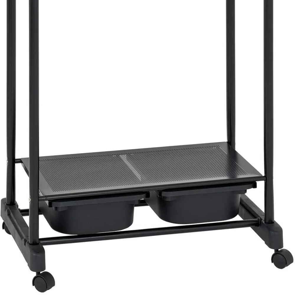 - Praktische Rollgarderobe in Chromfarben und Schwarz