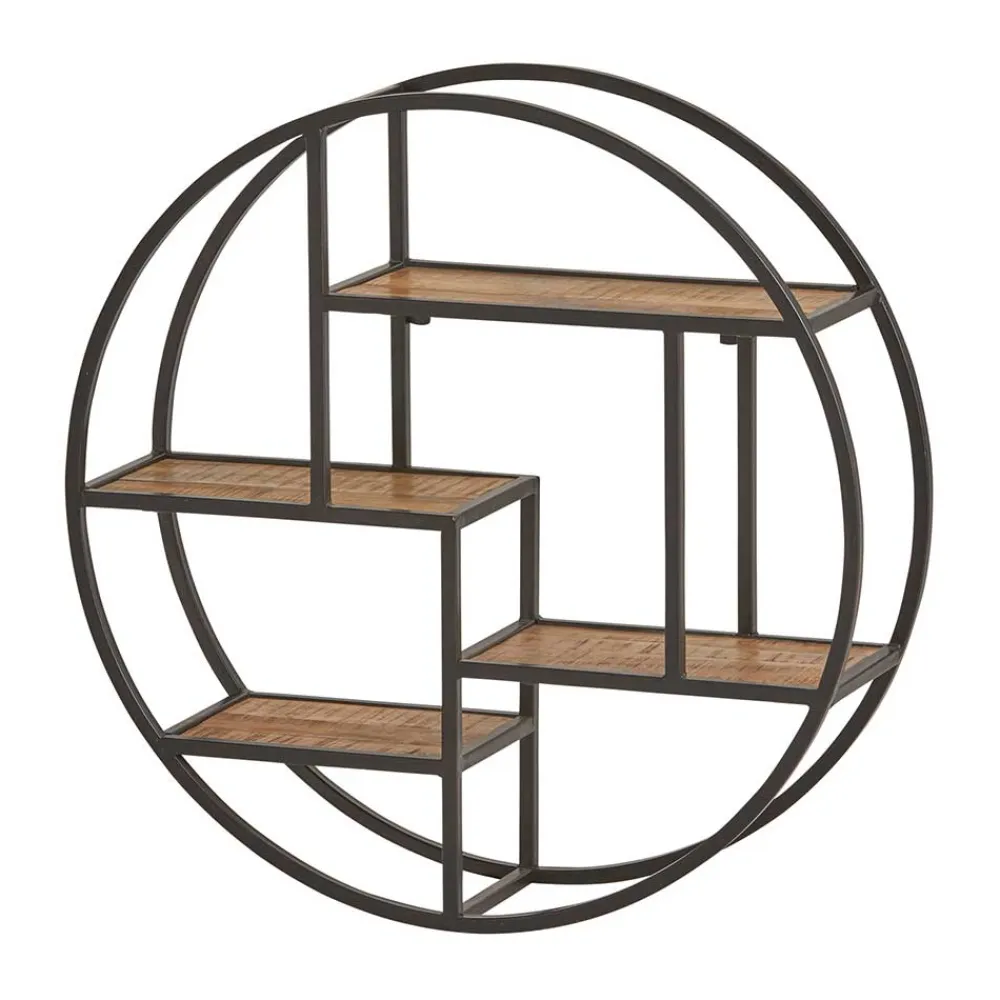 - Raffiniertes Wandregal in Mangoholz Naturfarben und Schwarz