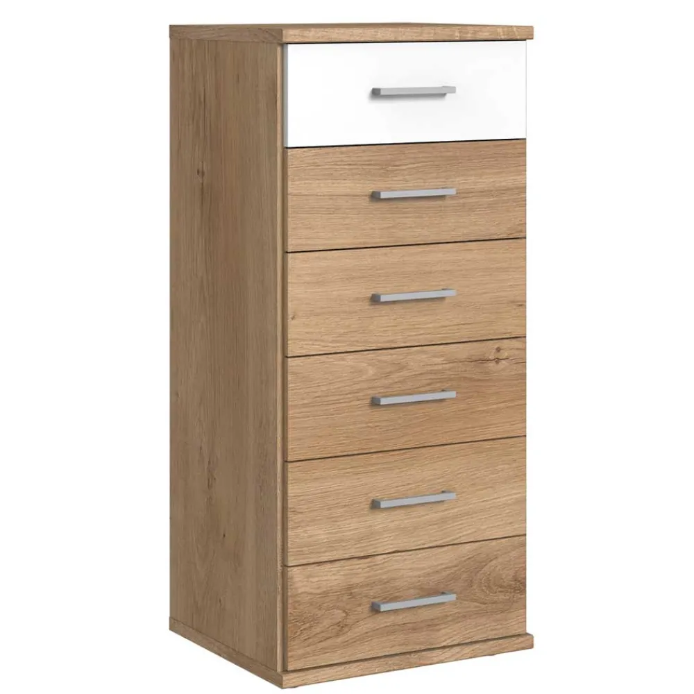- Platzsparende Kommode in Eichefarben und Weiß