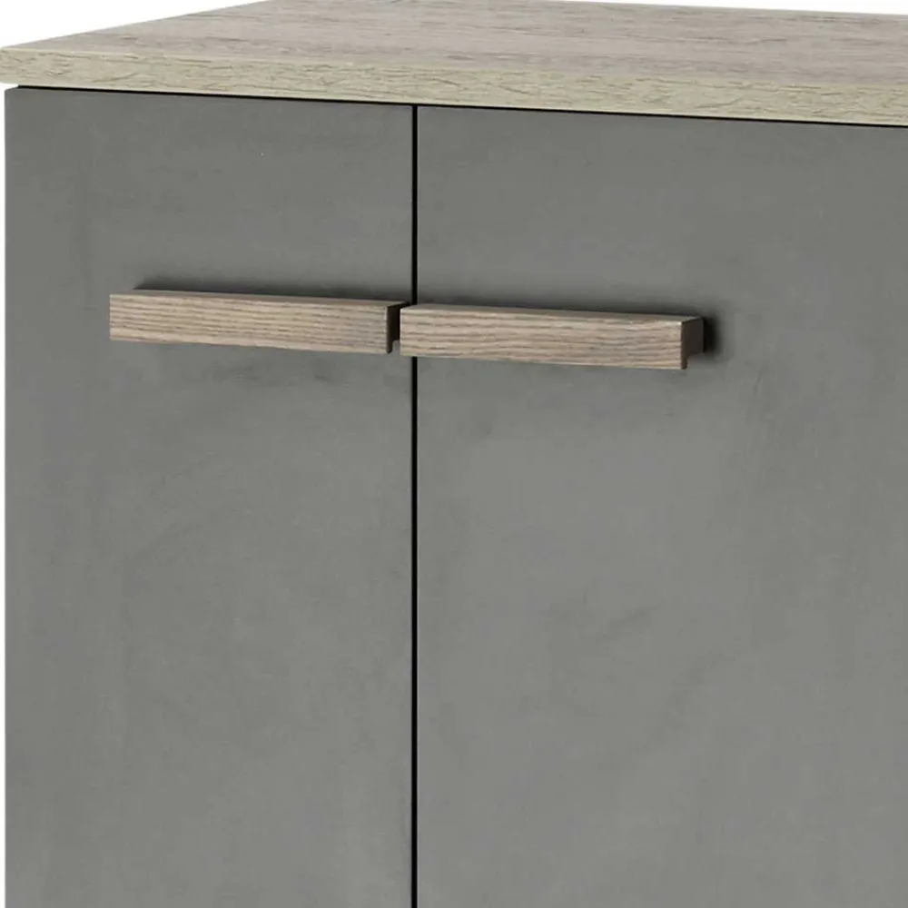 - Trendiger Badschrank in Anthrazit und Eichefarben
