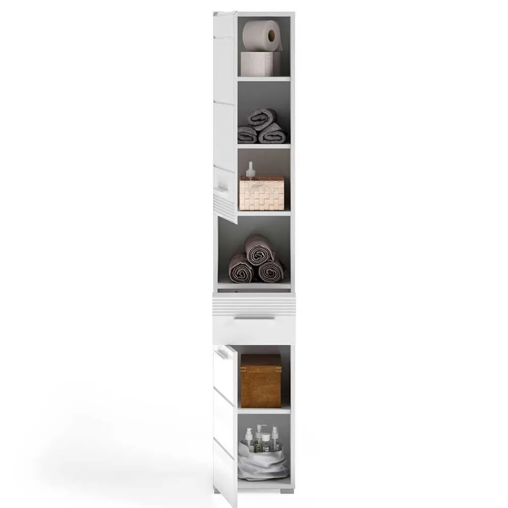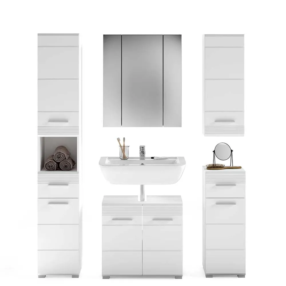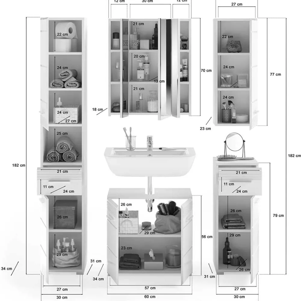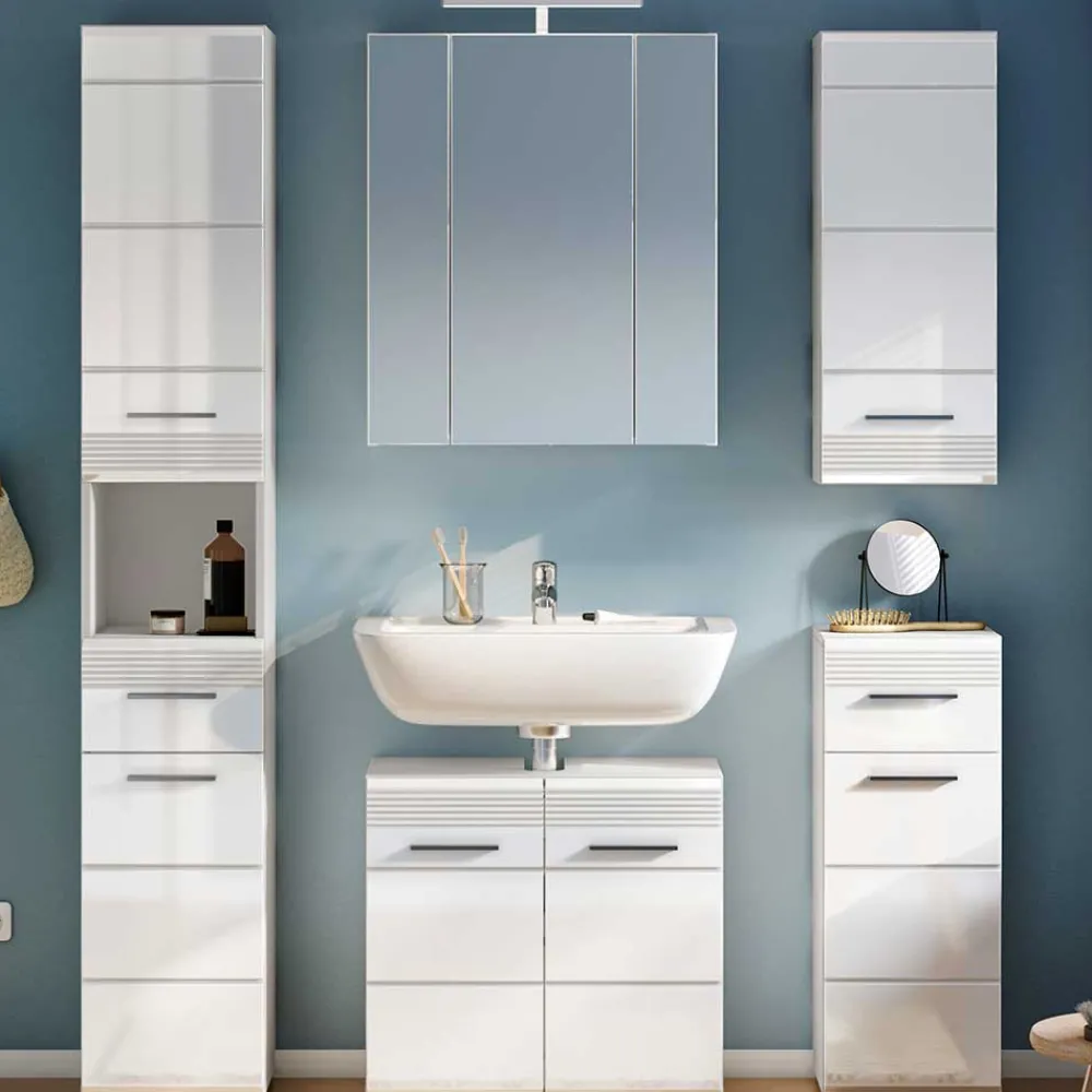 - Aus MDF, Spiegelglas (Front) und Spanplatte (Korpus) gefertigt
